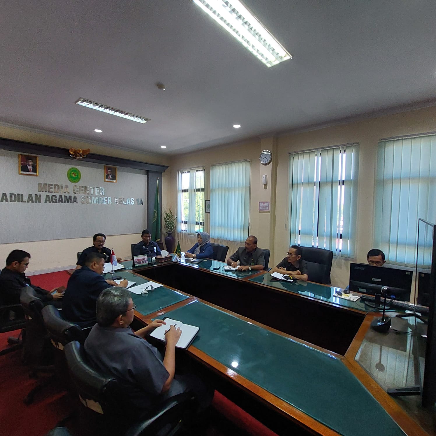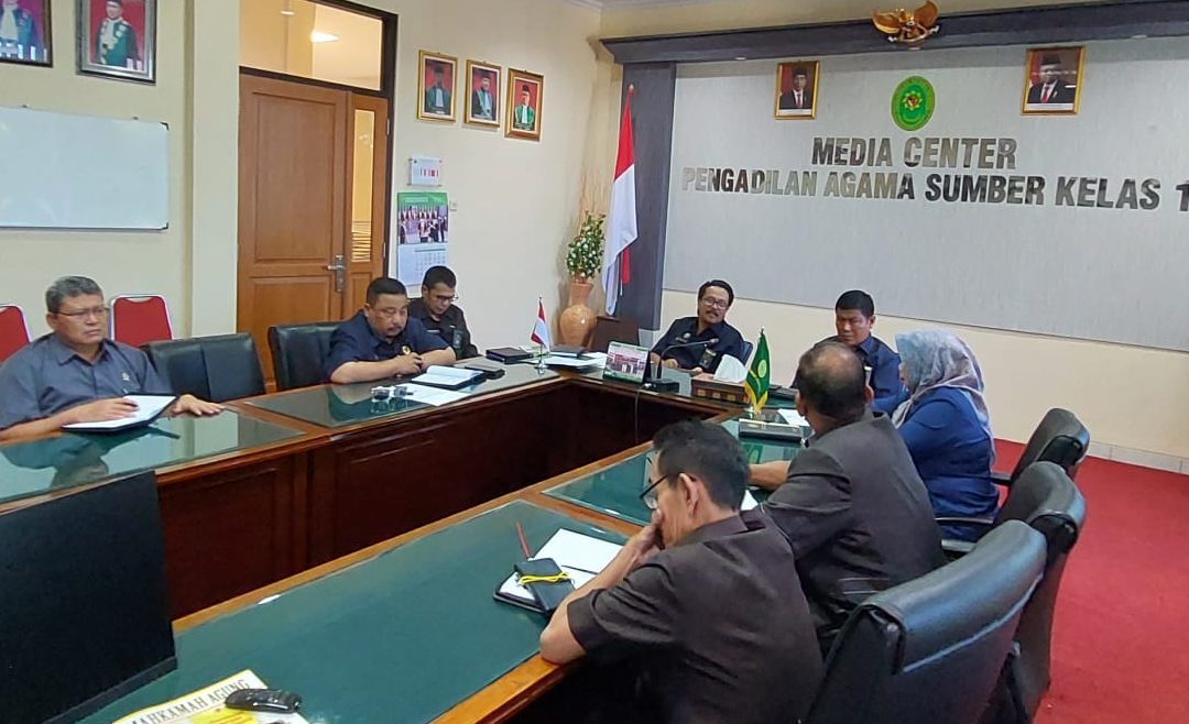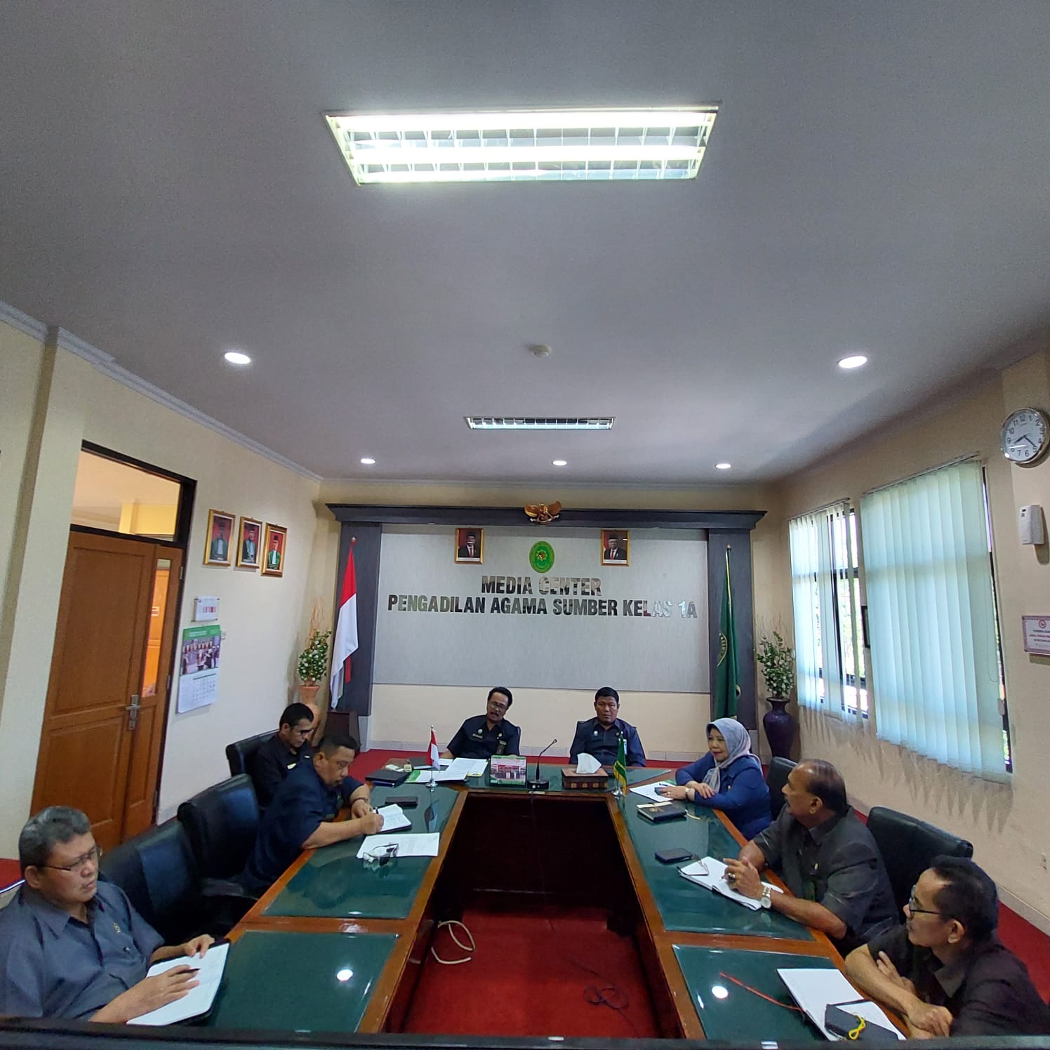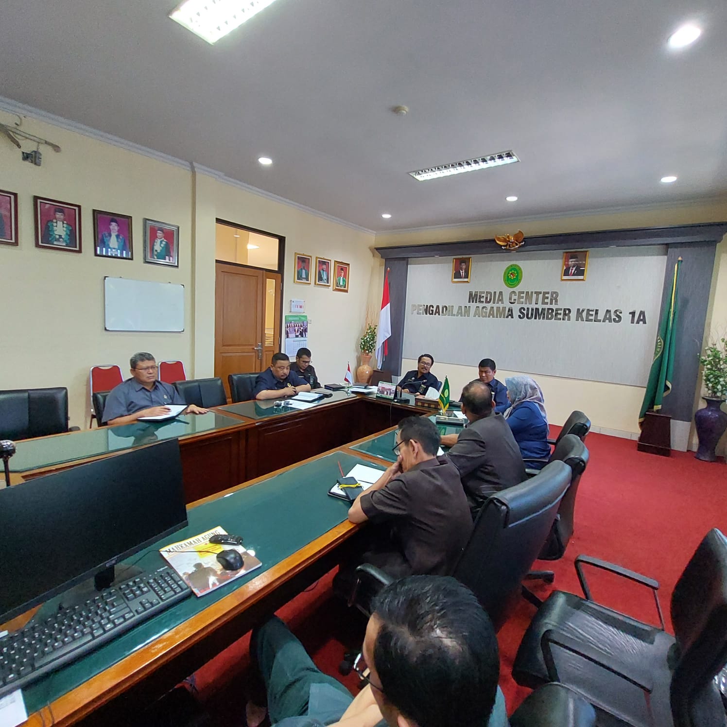 Bertempat di ruang Media Center Pengadilan Agama Sumber Kelas 1A, Ketua PA Sumber Drs. Ahmad Juaeni, M.H., dan Ketua Tim Pembangunan Zona Integritas Menuju WBBM PA Sumber H. Thamrin, S.Ag., M.H., mengadakan rapat evaluasi kelanjutan zona integritas di wilayah Pengadilan Agama Sumber. Acara yang dimulai tepat pukul 08.00 ini diikuti oleh seluruh Koordinator Area Tim Pembangunan Zona Integritas menuju WBBM (Wilayah Birokrasi Bersih dan Melayani) Pengadilan Agama Sumber. Rapat tersebut diantaranya membahas terkait SOP pelayanan yang harus diupdate beserta dokumen yang harus diperbaharui, pengadaan rapat oleh tiap area pembangunan ZI dengan anggotanya supaya bisa mengecek kelengkapan dokumen sebagai langkah awal, dan juga mempertahankan inovasi lama serta diharuskan menambah inovasi baru walau tidak mesti berbentuk aplikasi. Adapun direncakan pada bulan Desember 2023 mendatang sudah ada video profil pembangunan ZI (Zona Integritas). Selanjutnya di bulan Januari 2024 sudah dimulai aksi pembangunan Zona Integritas menuju WBBM (Wilayah Birokrasi Bersih dan Melayani) oleh Pengadilan Agama Sumber.